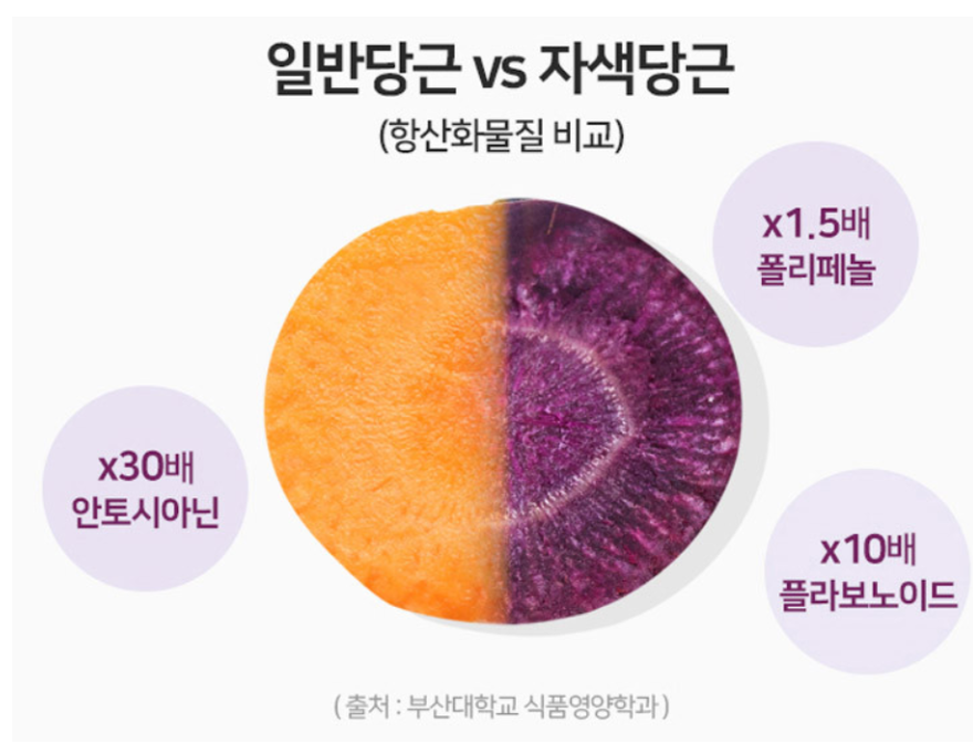 자색당근은 일반 당근보다 안토시아닌과 폴리페놀 함량이