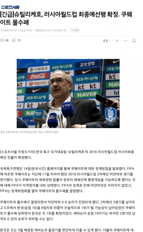 쿠웨이트가 피파의 징계로 몰수패가 되며 우리는 편안하게 최종예선 진출을 확정지었습니다