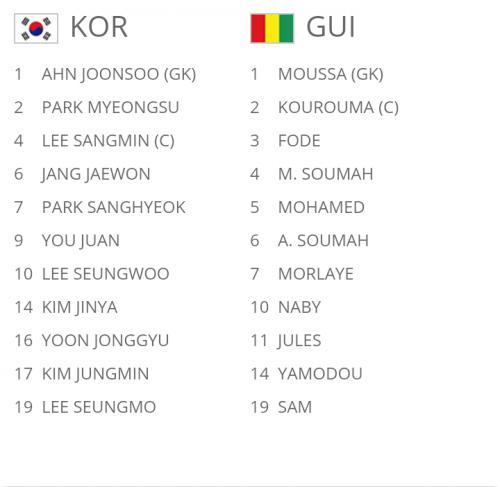 U-17 월드컵 칠레 2015 대한민국 VS 기니 선발 라인업