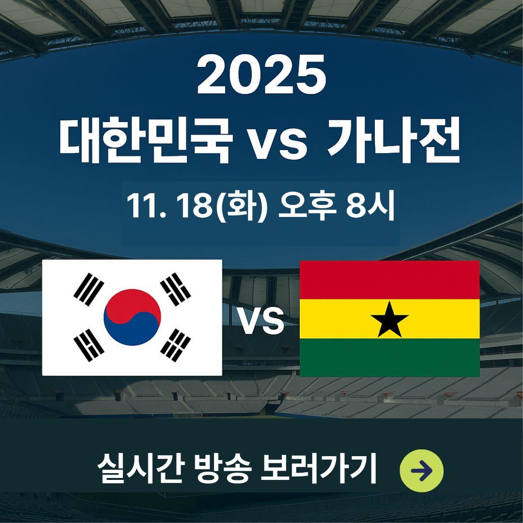 ▶ 2025 대한민국 vs 가나 중계|실시간 보기·쿠팡플레이 무료 시청·예상 선발·하이라이트 총정리 (11월 18일 A매치)
