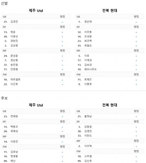 박원재가 경고누적인가요? 그덕에 이주용이 그 삽질을 해도 선발이군요 | ||