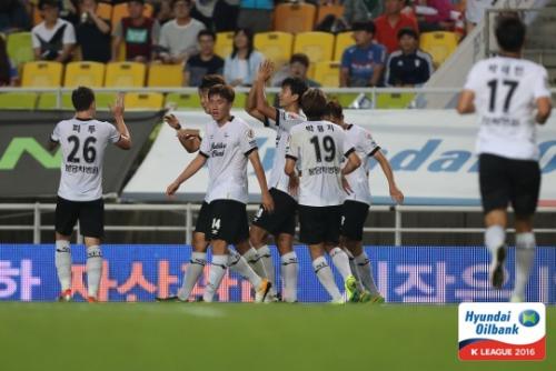 [스포탈코리아=수원] 김성진 기자= 성남FC가 4일 만에 가진 수원 삼성과의 리턴 매치에서 짜릿한 승리를 거뒀다. 승리의 주인공은 초장거리 골을 터뜨린 김현이었다.