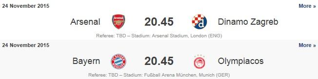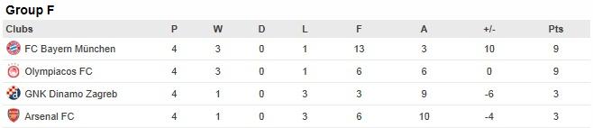 아스날은 자그레브, 바이에른 뮌헨이 올림피아코스를 이기고