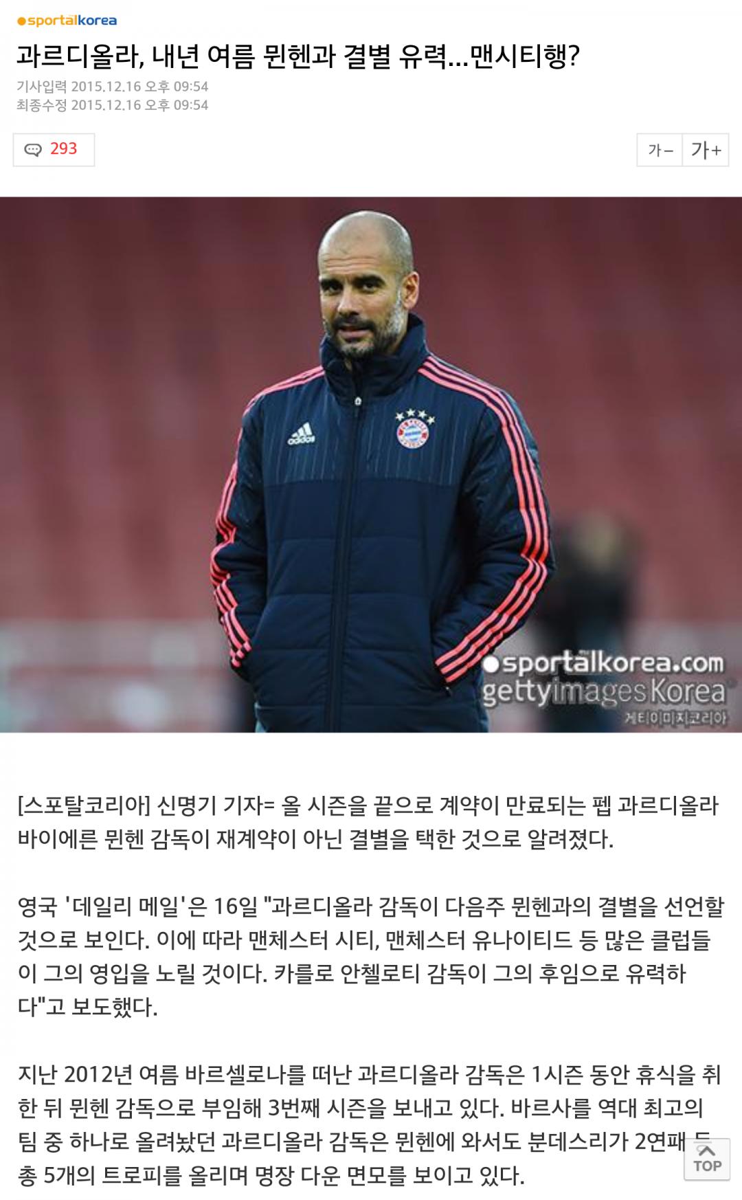 과르디올라, 내년 여름 뮌헨과 결별 유력? > 축구포럼