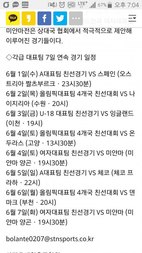 대표팀은 6월 1일 A대표팀의 스페인전 친선경기를 시작으로, 2일 올림픽팀 나이지리아전, 3일 18세 대표팀의 잉글랜드전이 잇따라 열린다. 4일에는 올림픽팀 온두라스전과 여자대표팀 미얀마전이 있고, 5일 A대표팀 체코전, 6일 올림픽팀 덴마크전, 7일 여자대표팀 미얀마전까지 7일간 총 8경기를 갖는다.