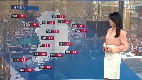 기상캐스터치고는 몸매가 아담하네요. | ||