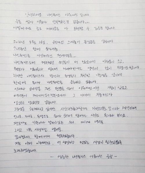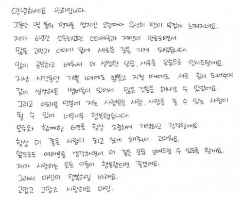 와... 원년 멤버들이 죄다 탈퇴하네요. 민하 탈퇴는 좀 타격 있을 것 같은데요.. | ||