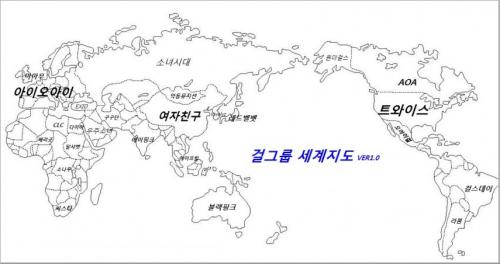 소녀시대가 러시아로 표시된 걸 보면 땅은 가장 넓지만... 세계적인 영향력은 이미 최고가 아니라는 뜻이고... 캐나다로 표시된 AOA 또한 땅은 2번째로 넓지만 영향력은 한참 그에 못 미친다는 뜻입니다. 그런 점에서 현재 가장 강력한 팀은 미국으로 표시된 트와이스이고... 중국으로 표시된 여자친구... EU로 표시된 IOI... 영국으로 표시된 마마무 등이 소녀시대와 함께 강력한 세력을 이루고 있다고 보아야 할 것 같습니다