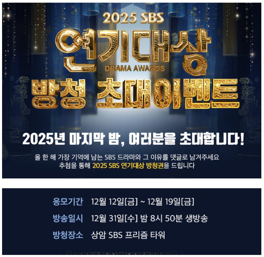SBS 연기대상 방청권 수령방법 꿀팁 총정리|댓글공감 방법 문자·QR·현장입장까지 바로가기