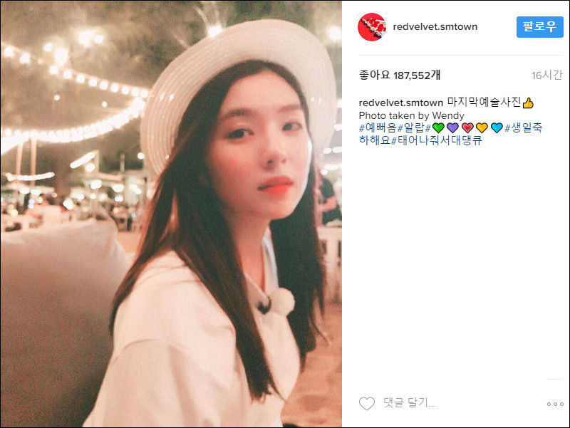 웬디가 찍어준 아이린 예술사진 > 연예인포럼