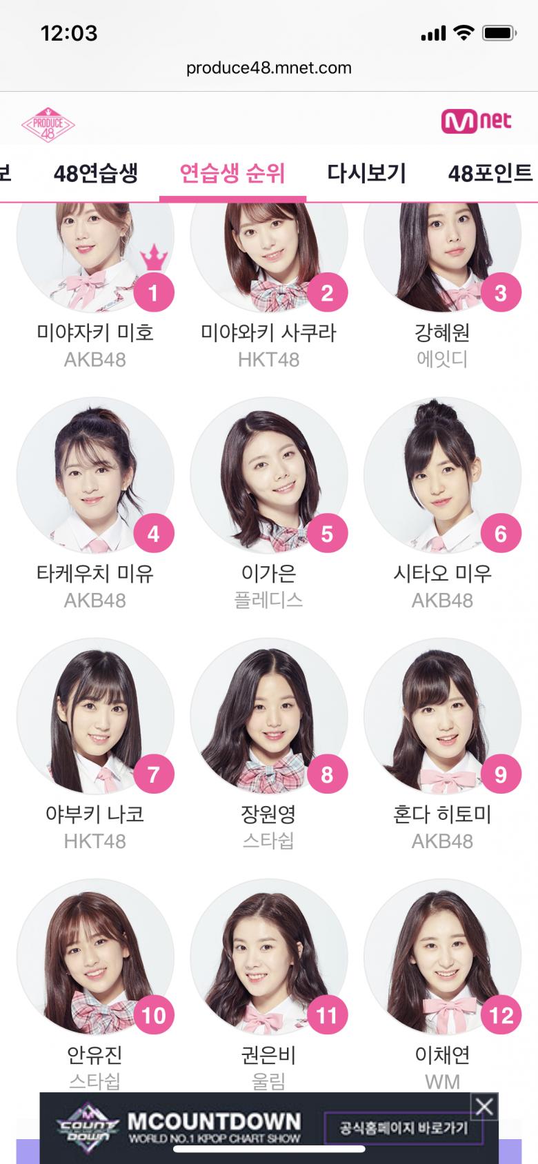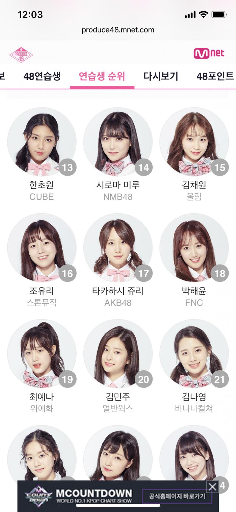 채원이도 보니까 아슬아슬한 등수네요... 이번에는 확실히 살아남을거 같은데