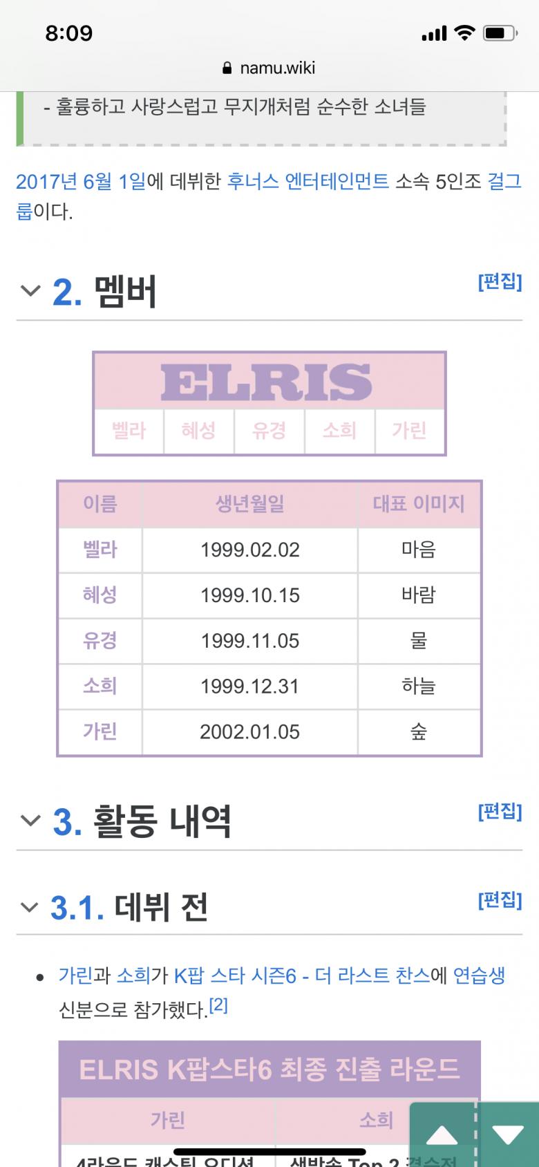 엘리스 미자없는데요...모두 스무살로 알고 있음 |