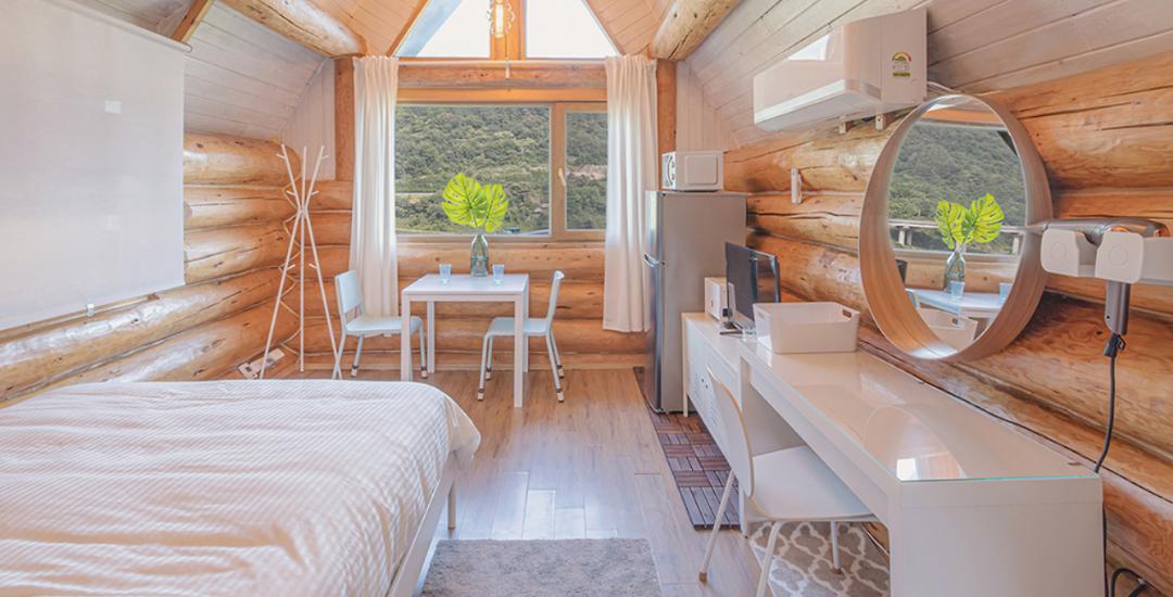 밀양로그펜션은 개별 글램핑, 바베큐 공간, 카페 운영, 조식 서비스, 사우나 및 노천탕과 같은 편의시설을 제공하여 가족 여행, 커플 여행 모두에게 적합합니다.