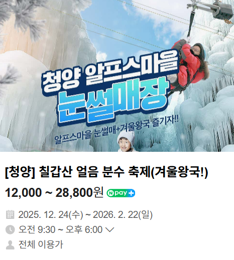 특히 겨울철에는 청양 알프스마을 얼음분수축제로 알려져 전국 각지에서 방문객이 찾는 명소입니다.