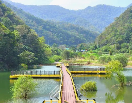 넓은 습지와 산책로가 어우러진 공간으로, 자연 그대로의 풍경을 느낄 수 있습니다.