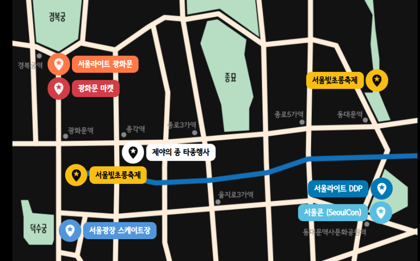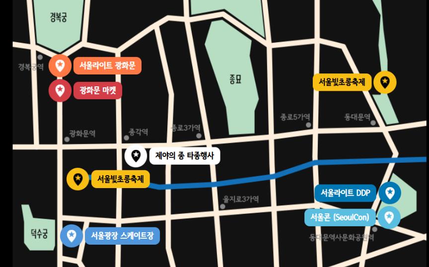 광화문광장을 중심으로 청계천, 서울광장, 동대문디자인플라자(DDP) 등 서울의 핵심 명소에서 동시에 진행되며, 시민과 관광객 모두가 참여할 수 있는 체험형 축제로 자리 잡았습니다.