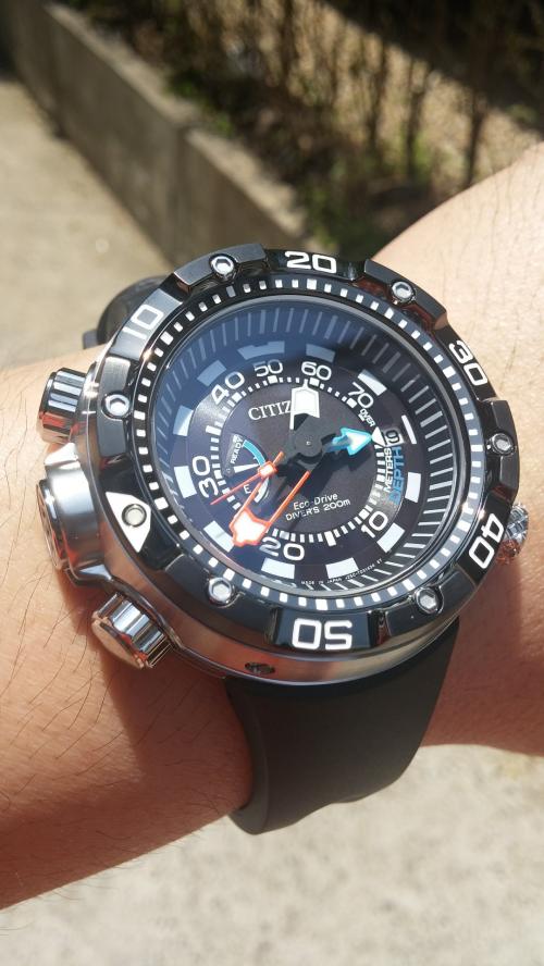 지샥이랑 시티즌이 워낙커서 스피니커가 작아보이기는 하는데 저래보여도 40~42mm 정도는 됩니다.^^;
