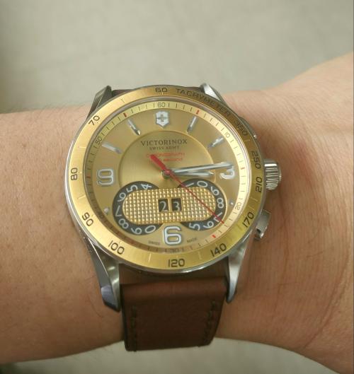이번에 기추한 빅토리녹스 크로노 클래식 샴페인 골드 가죽줄입니다.