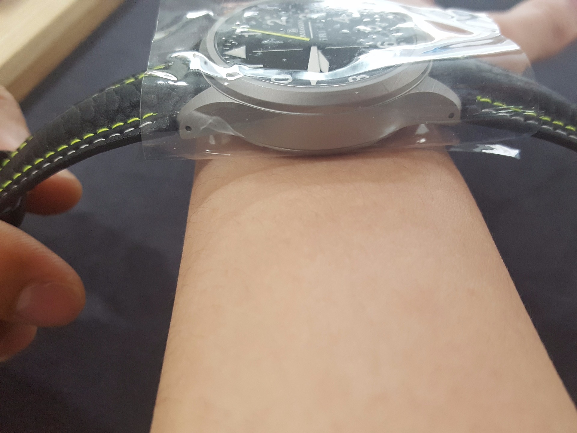 두께도 두껍고 손목에 비해 좀 커보입니다. |