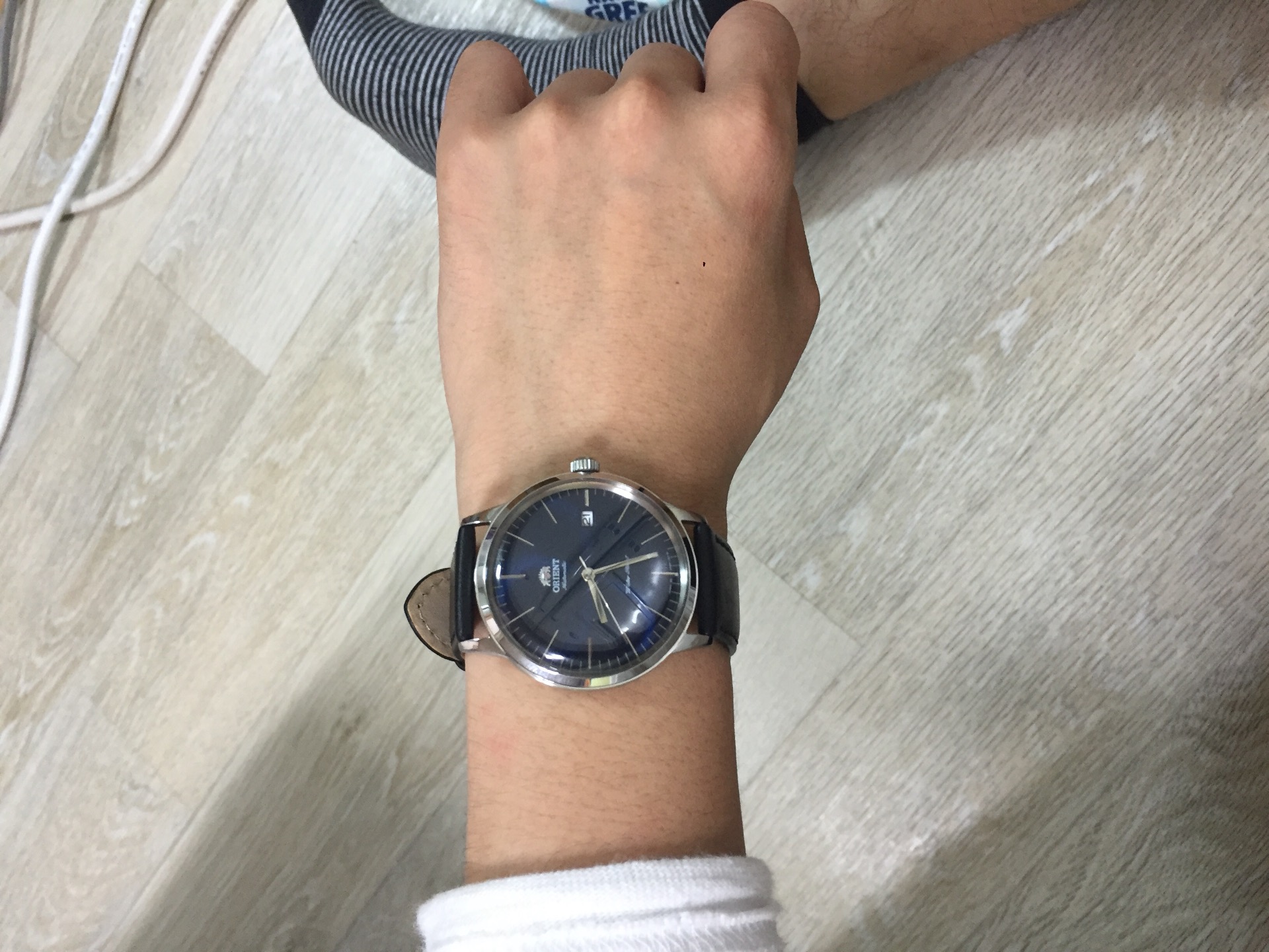 거기에 워낙 손목이 얇아서 걱정을 하였기 때문에 바로 착용을 하고 사진을 찍어 보았습니다. 약간 방간 느낌도 드는 듯 하였으나 이정도는 차고 다닐만 하겠다는 생각이 드네요.