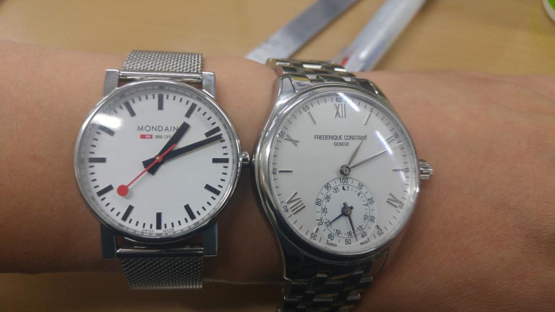 프콘 오를로지컬과 비교하면 크기와 두께 차이가 상당합니다. 메쉬밴드는 별로라고 생각했지만 가격이 제일 싸서 산거였는데 막상 차보니 이쁘고 편하네요.