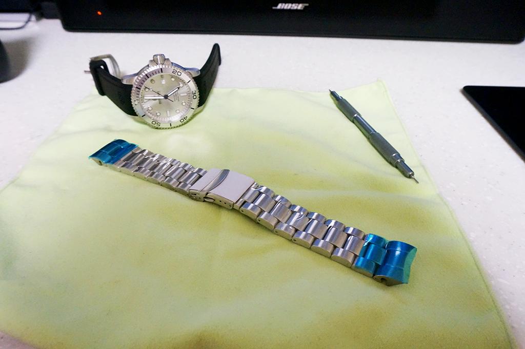 딥블루 공홈에서 다이버용 OEM 메탈 브레이슬릿을 구입하여 교체하여 주었습니다. 브레이슬릿은
