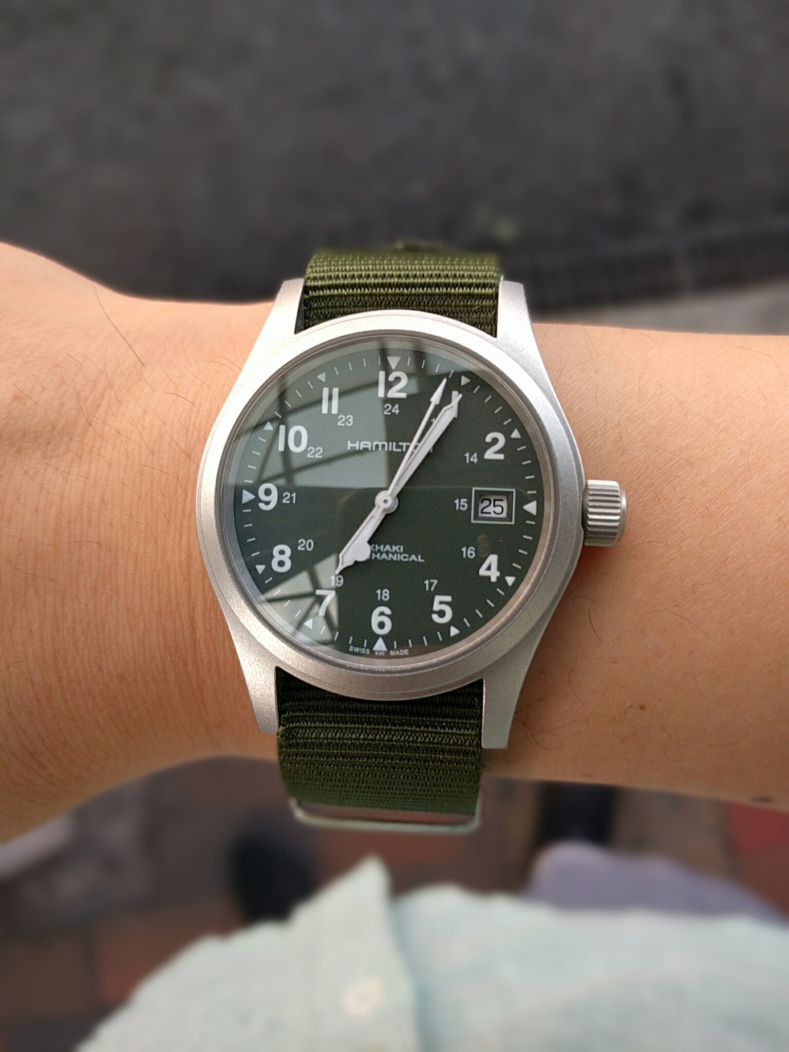 날이 날인 만큼 그레이 나토밴드에서 다시 국방색으로 갈아 끼고 외출합니다.