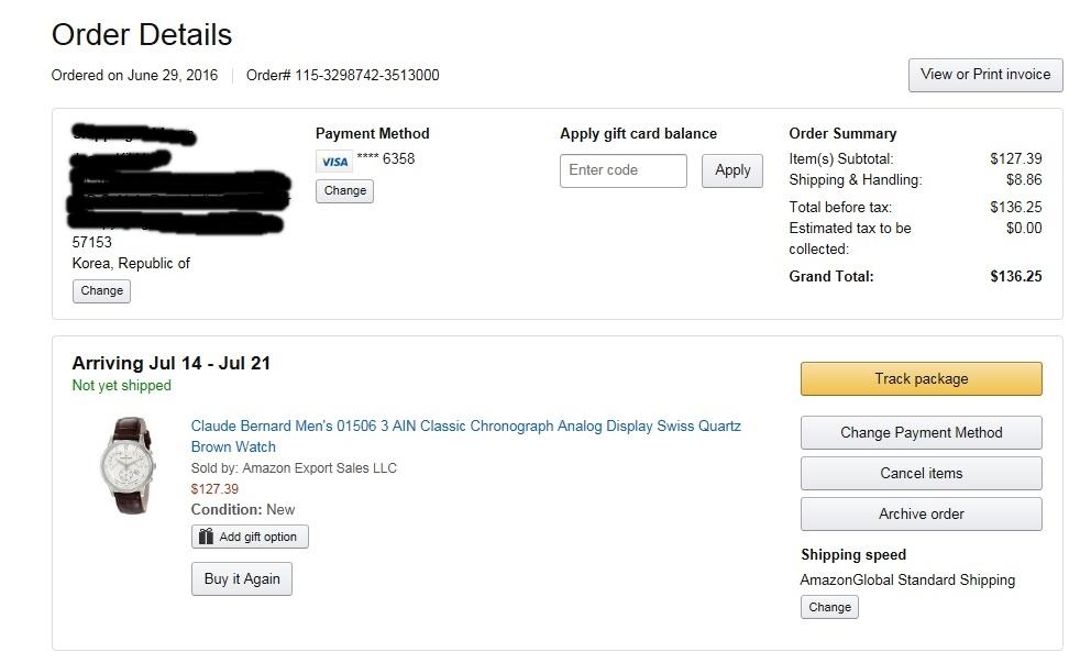 왠일인지.... 아마존이 아직 결제를 안하는데..(아마 물건이 아마존으로 배달되면 하던가요? 기억이.. ㅠㅠ)