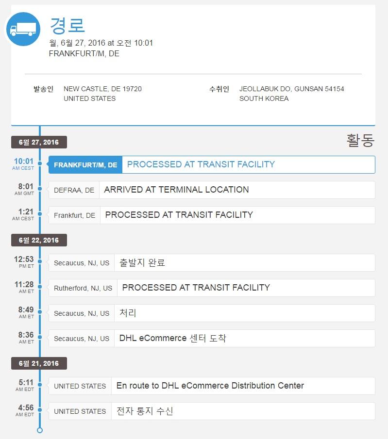 DHL eCommerce 라는걸로 온다는데 찾아보니 느리기로 악명높답니다.