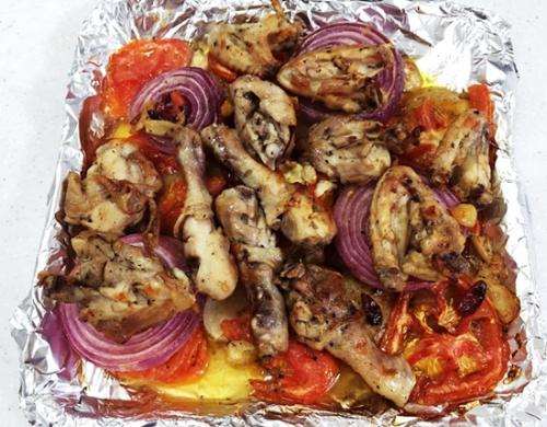 오븐에 넣어둔 부재료에 닭올리구 좀 더 구움..
