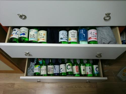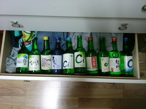 소주를 부모님께 들키지 않으려고 숨기려고 넣어