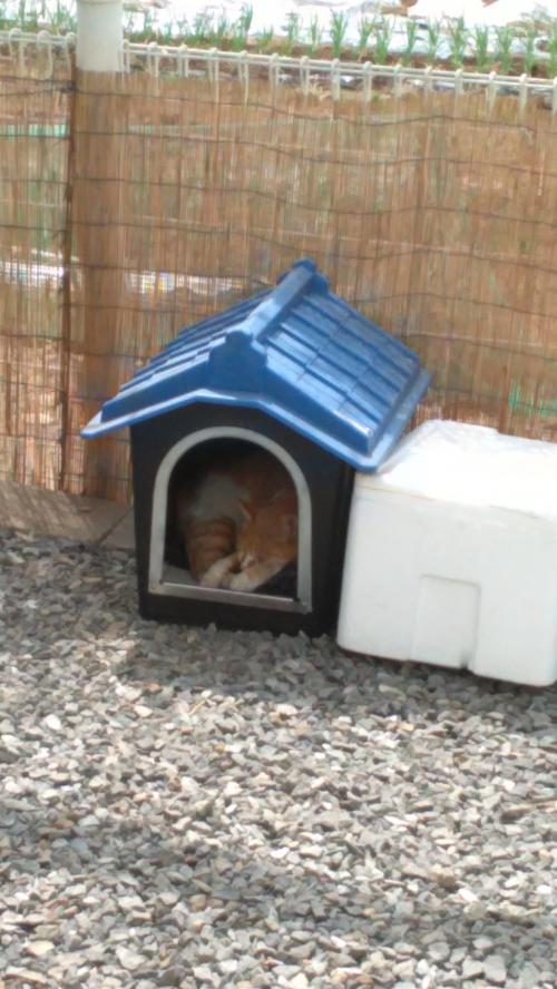 한참후에 길냥이는 마당에서 축 늘어져 자고있다가 더운지 아예 집으로 들어가 자고....