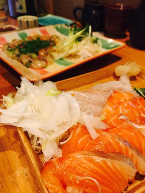 첨에 연어사시미 한접시먹다가 1잔에 1점씩 먹어도