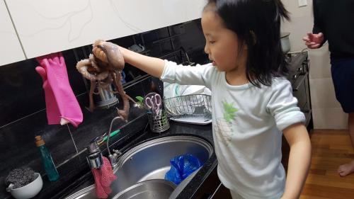 P.S 저도 선뜻 못잡는 산낙지를.. 딸래미가 목을 뙇!!!!