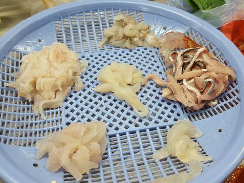 소쿠리에 담긴 잡어회 너무 담백해 보입니다. | ||
