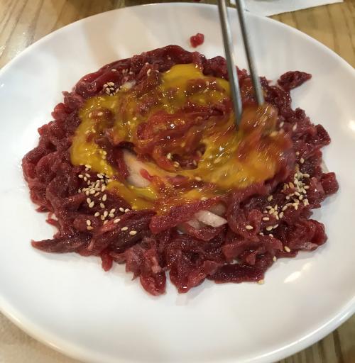 긴 연휴에 지루해서 어제 다녀온 광장시장에서 먹은 육회입니다.