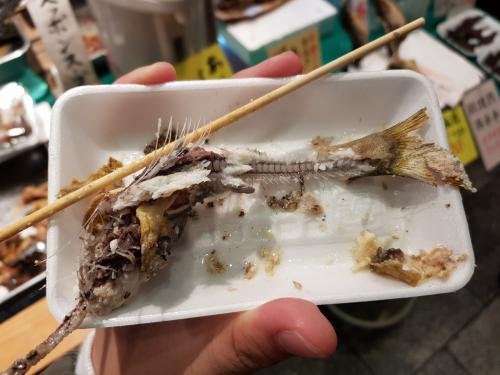 니시키시장에서 대게어묵바와 찐전복,절인참치회,은어통구이(이거 먹을때 서양아재들이 동의없이 사진 엄청찍어가셨네요..하..제 얼굴은 전세게 sns에 퍼져있을듯합니다),대구튀김구이(이거 아주 물건이었습니다. 20개정도 먹고싶어요 진짜 맛남)