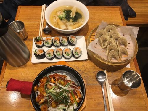 반값이면 괜찮아요. 우동은 별로였고, 참치김밥은 그냥저냥 괜찮았어요. 정가는 너무 비싸서.. 갈비만두 괜찮아요. 만두가 작은데 속이 꽉차고 알찬느낌이라 만족도가 높네요. 그리고 추천받아서 선택한 새우칠리볶음밥(?)은 괜찮네요. 실하게 낚지 들어가있어요. 철판이 깔렸는데 다른곳에서 뎁혀서 얹어준 느낌입니다. 다른 분식집보다 좀 비싸지만 밥은 김밥싸려고 한 밥인거같아 좋네요.