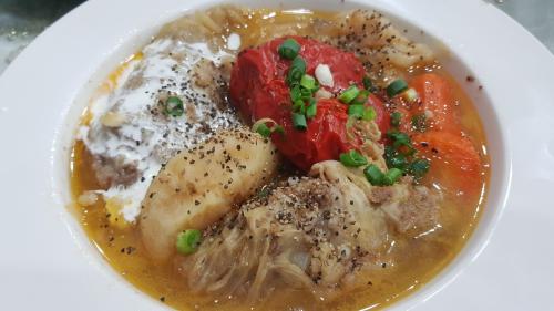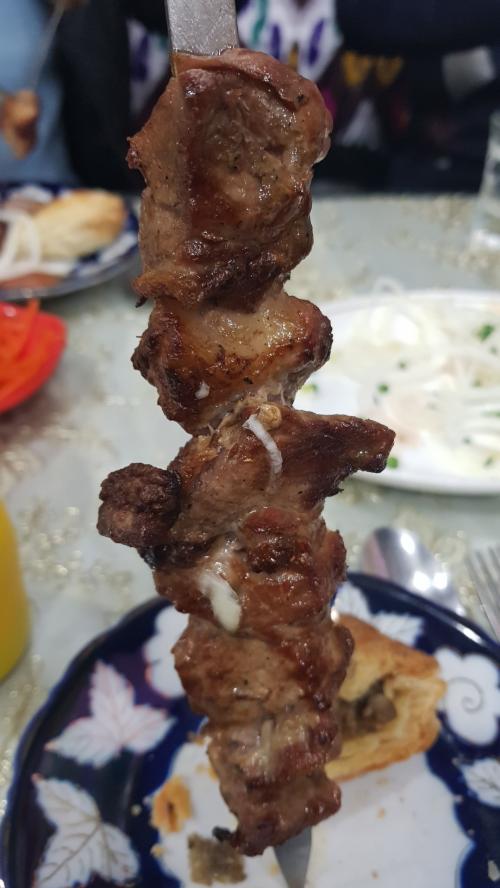 쌈싸,샤슬릭,보르쉬,글룹츼! 주문하신거 전부 소련권 나라에서 어렵지 않게 먹을 수 있는 음식입니다. 고로 우즈벡식당에서 먹은 구소련(러시아)의 대중적인 음식입니다. 중앙아시아 수프가 대체로 국물이 적고 건더기가 많죠. 기름지고..원래는 1번에 보이는 빵시켜서 샐러드-수프-메인 먹을때 밥대신 먹는겁니당. | ||