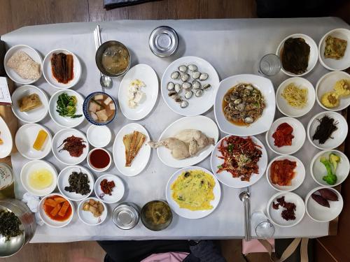 와~~~~~~~~~ 사진이 한 프레임에 다 안찍힐 정도로 반찬이 많네여~ | ||