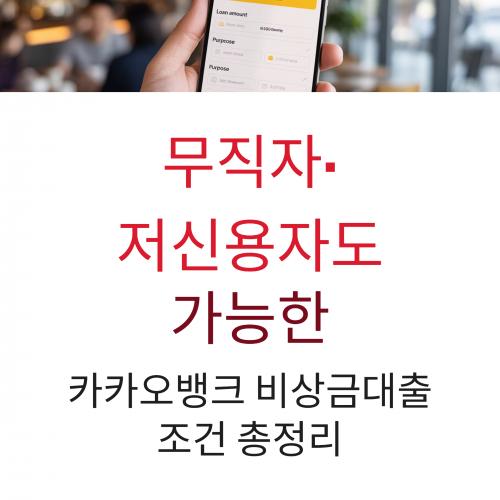 직장이 없거나 신용점수가 낮아도 대출이 될까 고민되신 적 있나요. 카카오뱅크 비상금대출은 무직자와 저신용자도 승인 가능성이 있어 많은 분들이 찾고 있어요.