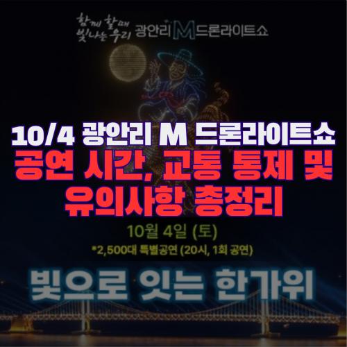 이번 추석 연휴, 광안리 M 드론라이트쇼 특별공연을 완벽하게 즐기기 위한 핵심 정보를 가독성 높게 정리했습니다. 교통 통제 및 와이파이 일시정지 시간을 꼭 확인하세요.
