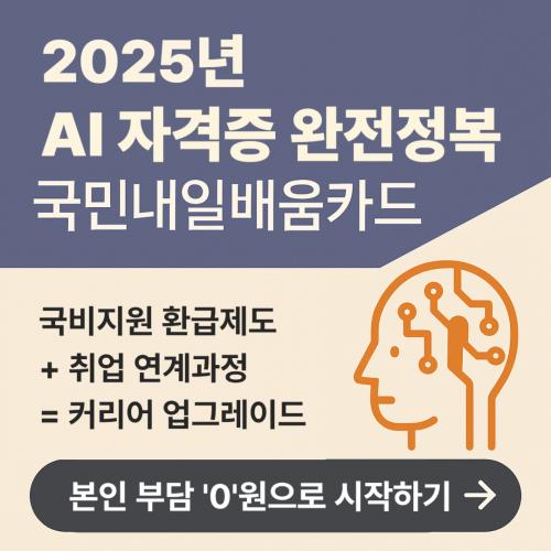 2025년 AI 자격증, 국민내일배움카드로 ‘0원 취득’ 가능! 커리어·연봉까지 바꾼 현실 후기 공개 > 자유갤러리