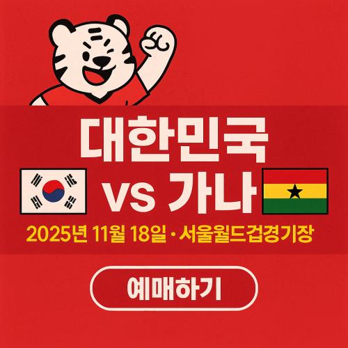 2025년 11월 18일(화) 오후 8시, 서울월드컵경기장에서 대한민국과 가나의 친선경기가 열립니다.