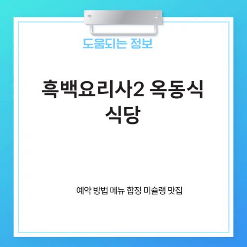 흑백요리사2 옥동식 식당 예약 방법 메뉴 합정 미슐랭 맛집