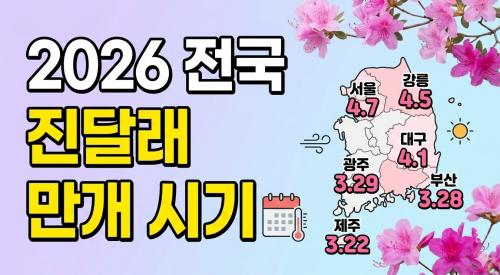 산림청은 전국 수목원의 관측 데이터와 정밀 기상 분석을 통해 '2026년 진달래 개화 예측지도'를 공식 발표했습니다.