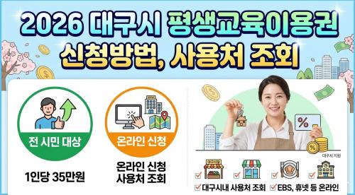 "공부하고 싶은데 수강료가 부담되셨나요?" 대구 시민이라면 소득과 상관없이 신청 가능한 유형도 있으니 지금 바로 확인해 보세요!
