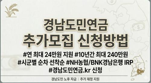 연 25% 수익률 효과를 내는 '경남도민연금' 추가모집이 드디어 시작됩니다!