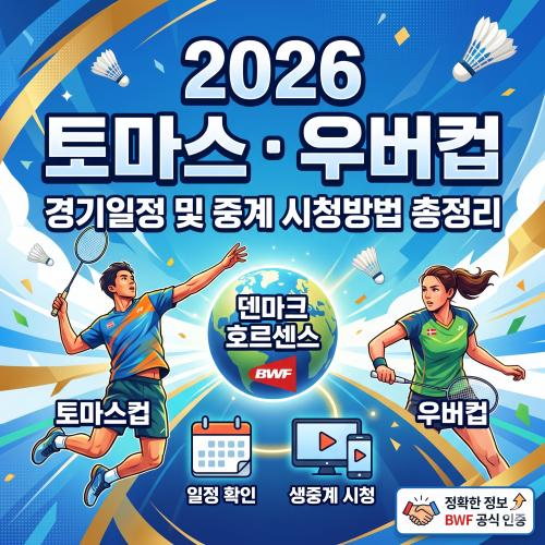 드디어 내일(24일)부터 덴마크 호르센스에서 세계 최고 권위의 배드민턴 단체전인 '2026 토마스 & 우버컵'이 시작됩니다. 이번 대회는 우리 대표팀, 특히 안세영 선수가 이끄는 여자부 우버컵의 우승 가능성이 매우 높아 배드민턴 팬들의 기대가 큰데요.