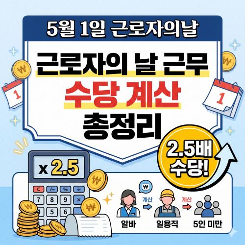 매년 5월 1일이 되면 '내 월급이 제대로 들어올까?' 고민하시는 분들 많으시죠. 5인 이상 사업장이라면 시급제 근로자 기준, 유급휴일 수당을 포함해 최대 2.5배의 임금을 받을 권리가 있습니다.